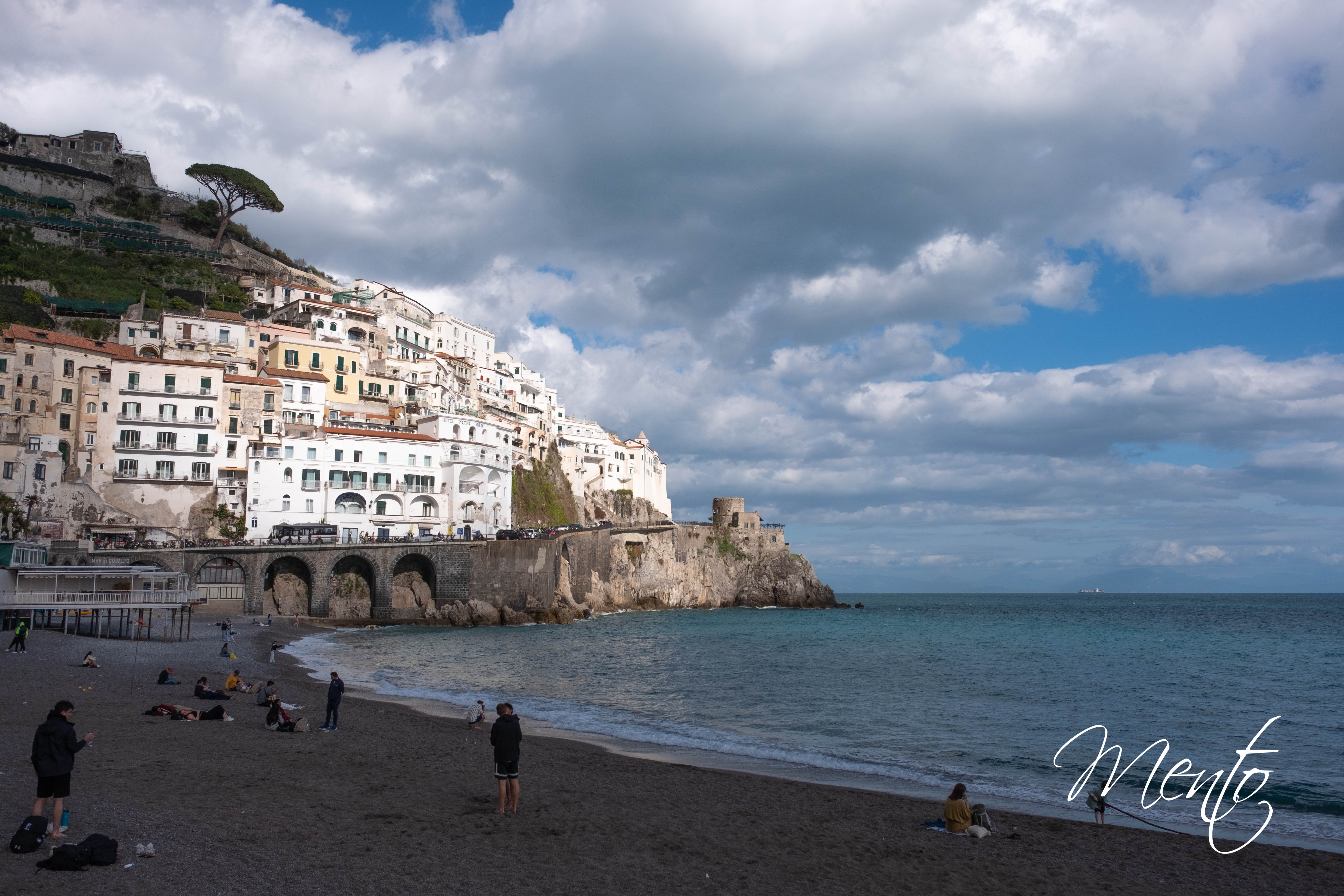 Descendemos hacia la Spiaggia Grande, la playa principal, recorriendo las pintorescas calles repletas de tiendas de souvenirs. Muchas de ellas están dedicadas al gran protagonista de la región: el limón, base de productos típicos como el limoncello, jabones aromáticos y dulces artesanales.