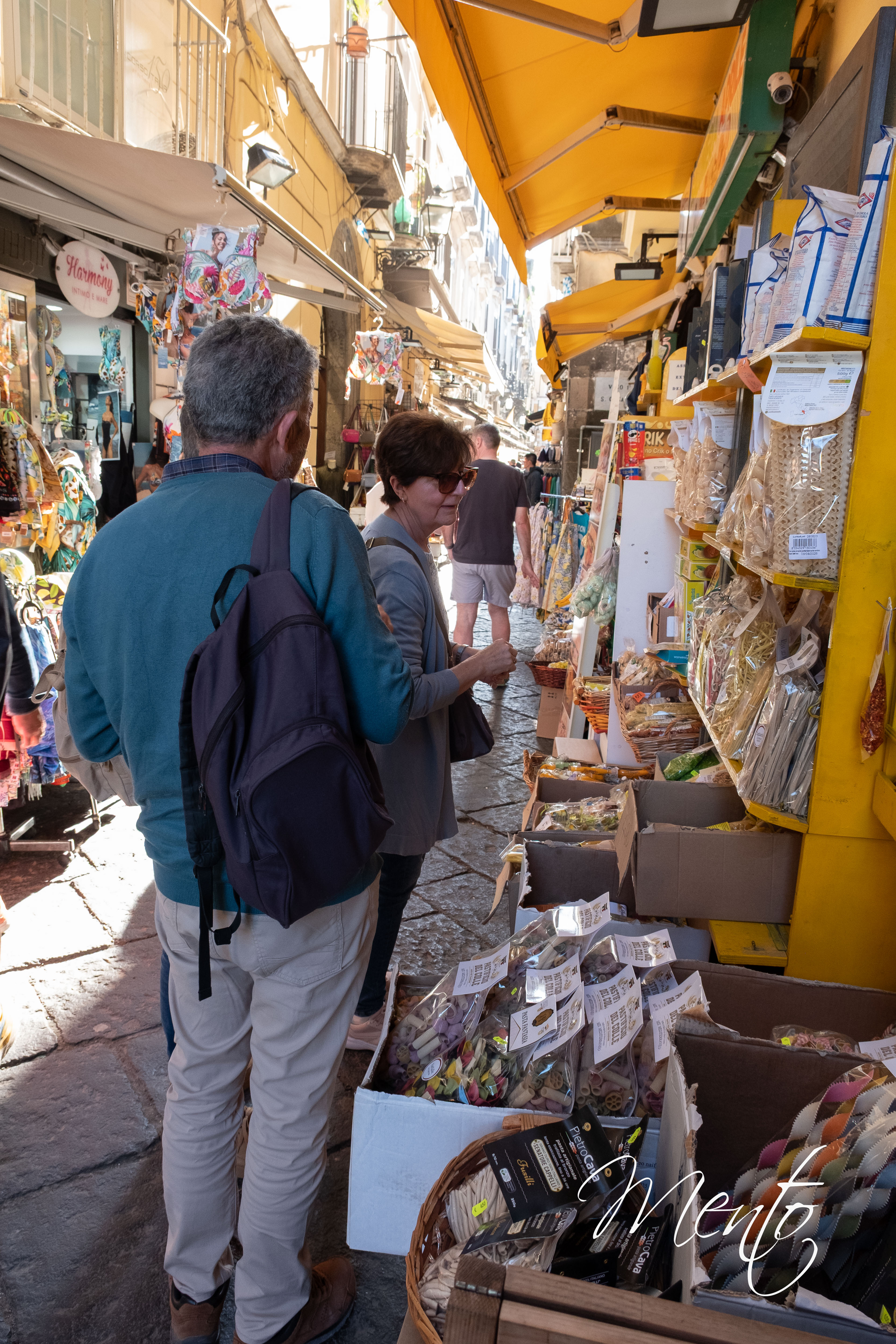 Desde allí, nos dirigimos a la Iglesia del Gesù Nuovo y más tarde a Santa Clara, pero ambas están cerradas, por lo que decidimos dar un paseo hasta la Piazza Dante, donde se celebra una animada feria gastronómica.