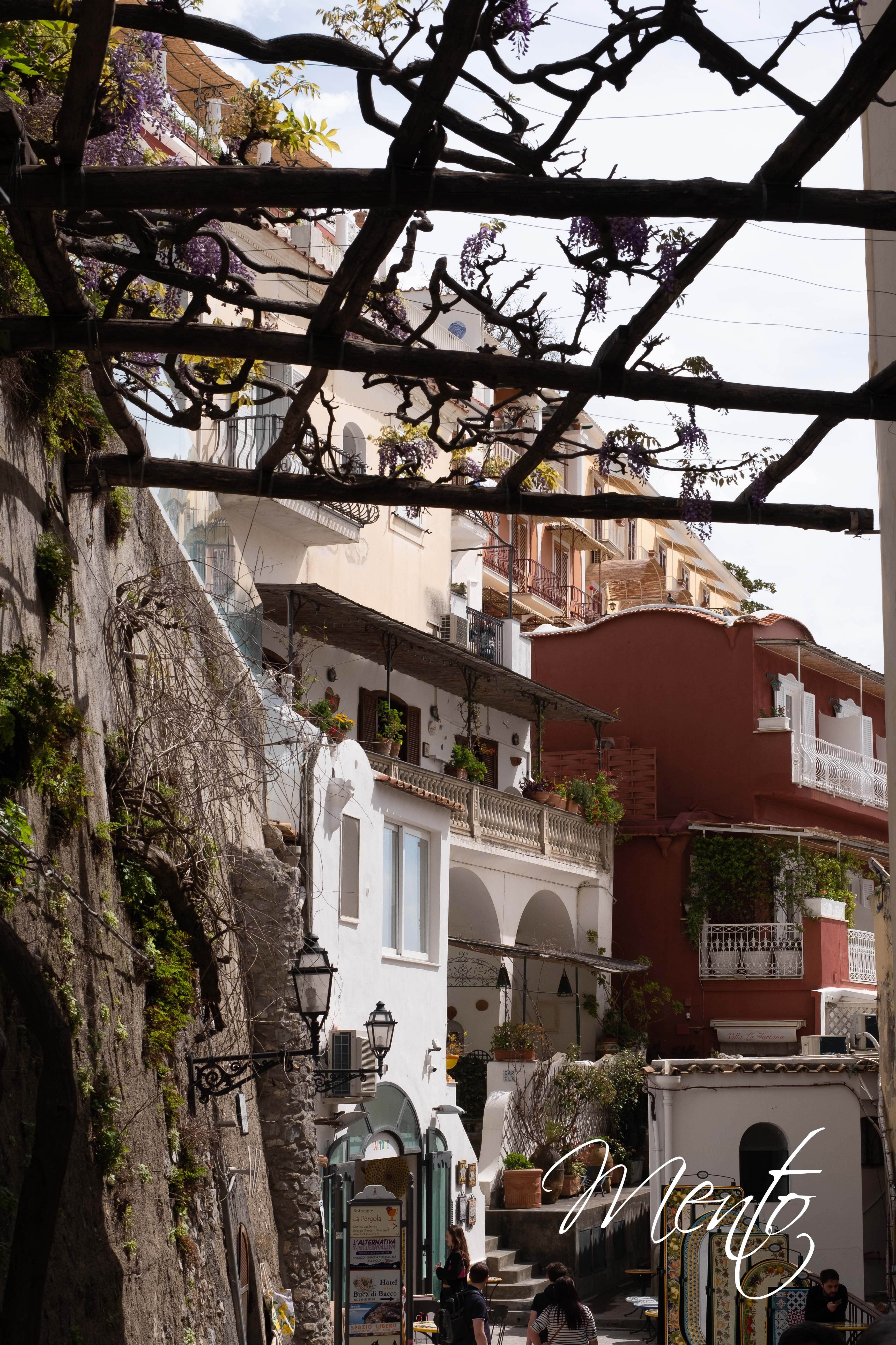 Desde la parte alta del pueblo, Positano se despliega ante nosotros en todo su esplendor. Tomamos algunas de las fotografías más características del lugar, capturando sus casas de colores pastel que descienden en terrazas hacia el mar, un entramado de calles estrechas cubiertas por enrejados de madera entrelazados con buganvillas que comienzan a florecer y que pronto inundarán el paisaje con su vibrante colorido.