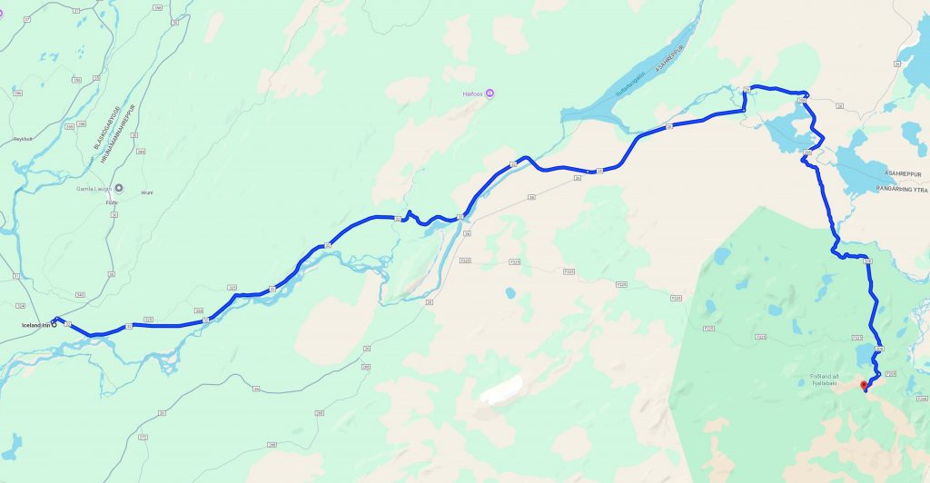 Decidimos continuar caminando por una senda paralela al río para ver la segunda cascada Selfoss pero desistimos al ver la distancia y dificultad de la senda. Pensamos que se nos irá todo el día si lo hacemos y la dejamos para esta tarde, regresando al coche para deshacer el recorrido por la pista de tierra y volver a la 1.