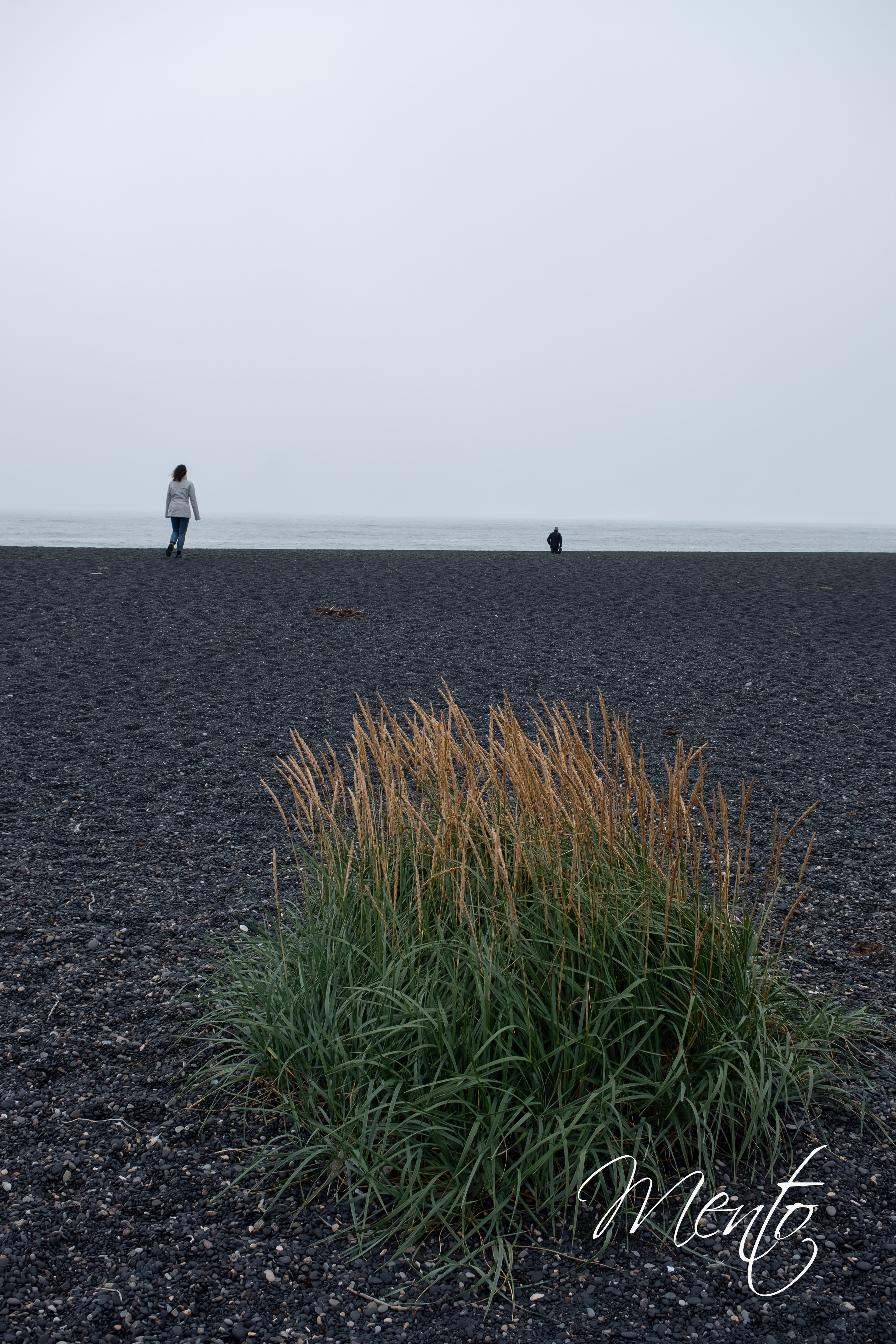 Para acceder a mar abierto desde el aparcamiento debemos ascender un par de colinas de finas piedras negras que crujen bajo nuestros pies y dificultan caminar. Finalmente conseguimos ver la playa. Las olas chocan con fuerza estallando en la arena. Cuando descendemos vamos bordeando la albufera intentando acercarnos los cisnes, pero al vernos se alejan con elegancia, protegiendo su territorio.