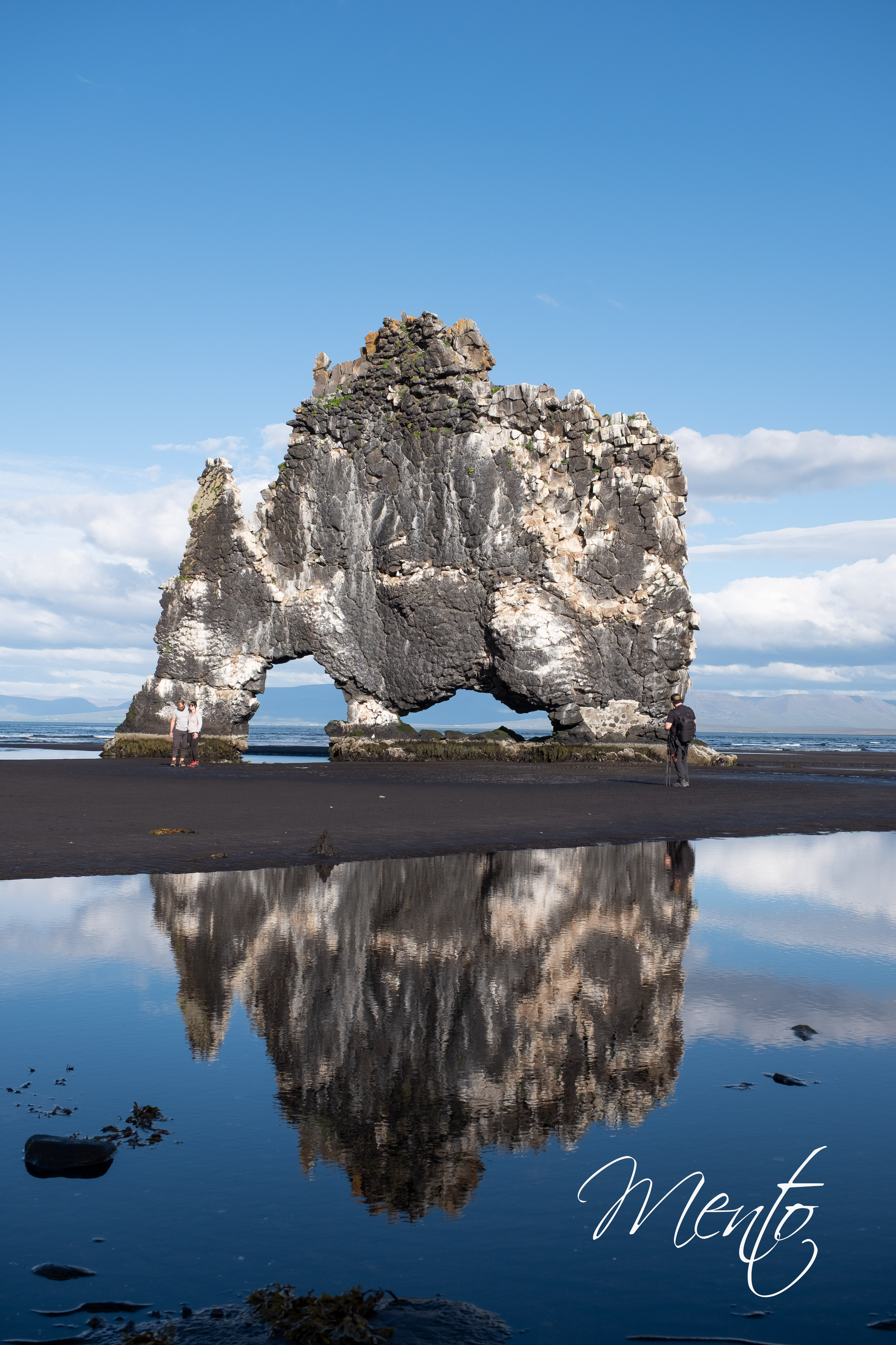 Nada resulta como esperábamos. Parar en Hvitserkur resulta un gran acierto porque, si bien la roca, que la leyenda identifica como un troll petrificado por el sol, no deja de ser solo eso, un imponente farallón de 15 metros de altura cuya forma evoca a un rinoceronte bebiendo, el entorno con marea baja y luz de tarde justifica la visita, ofreciendo muchas posibilidades fotográficas.