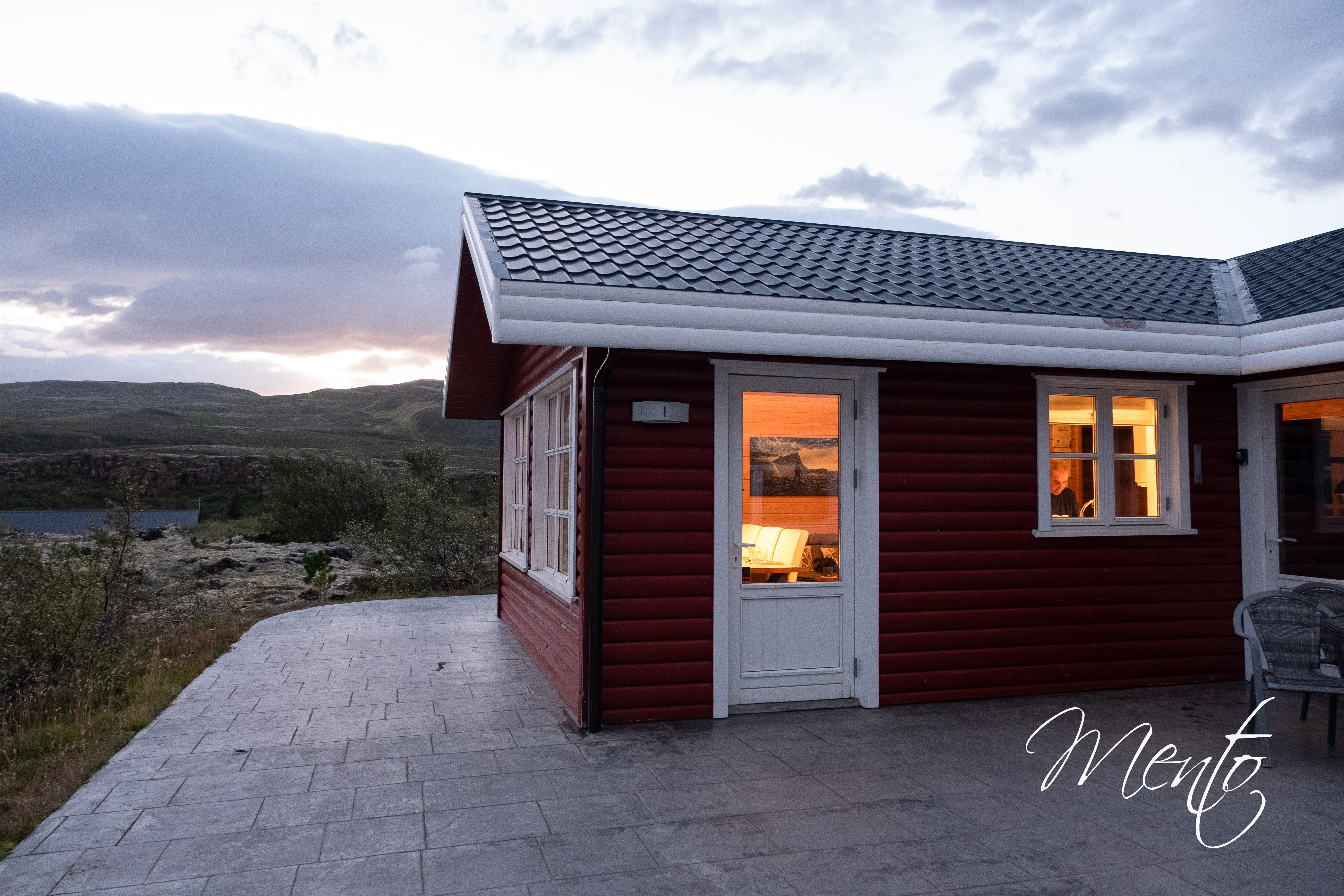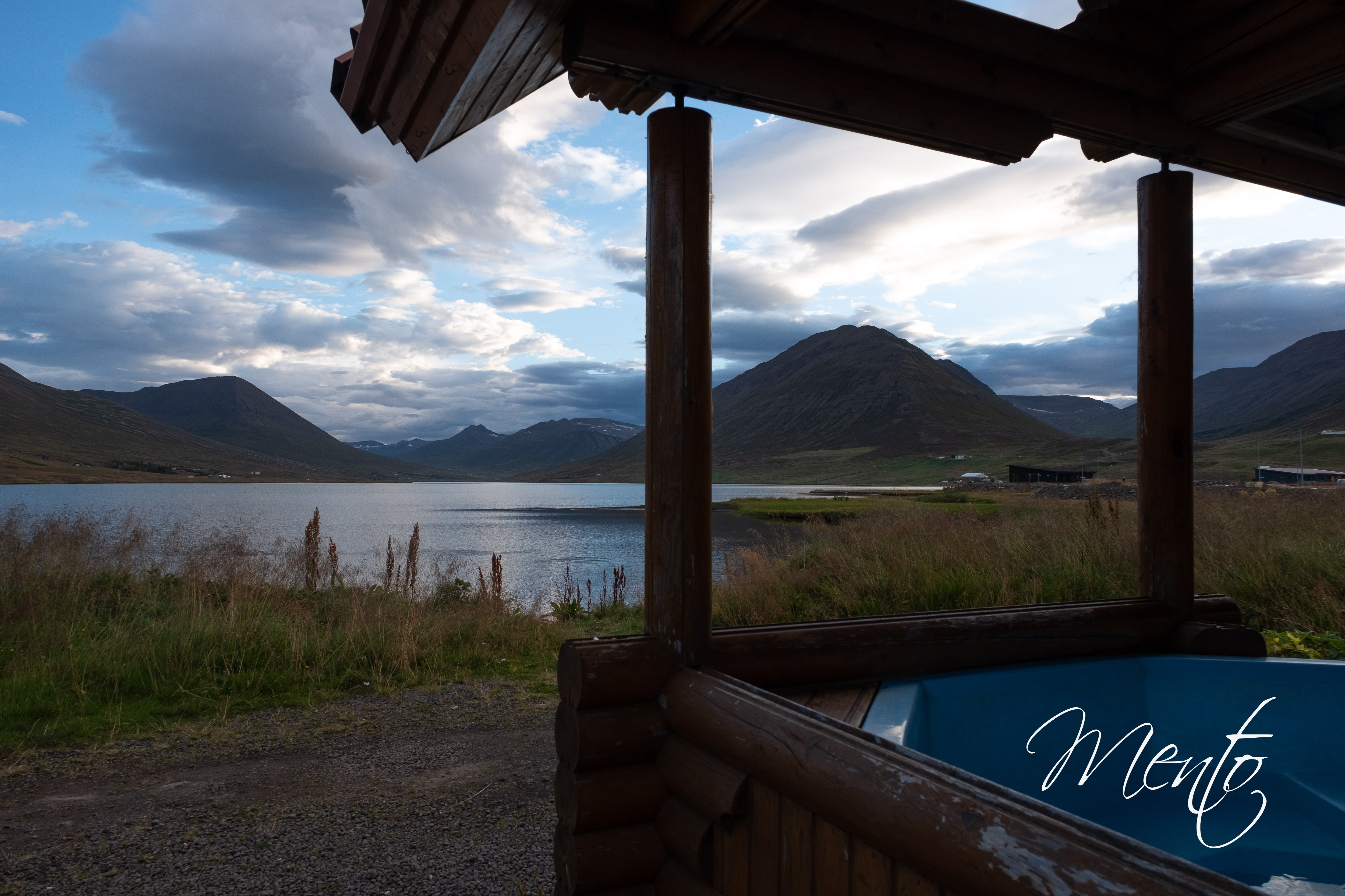 Nuestro alojamiento es una cabaña de madera situada frente al lago Ólafsfjarðarvatn que nos ofrece unas bellas vistas, tanto desde la terraza, como desde el porche que cubre la entrada de la casa. Allí mismo tenemos el hot tub que procedemos a llenar en cuanto llegamos para poder disfrutar más tarde de un relajante baño en un entorno espectacular.