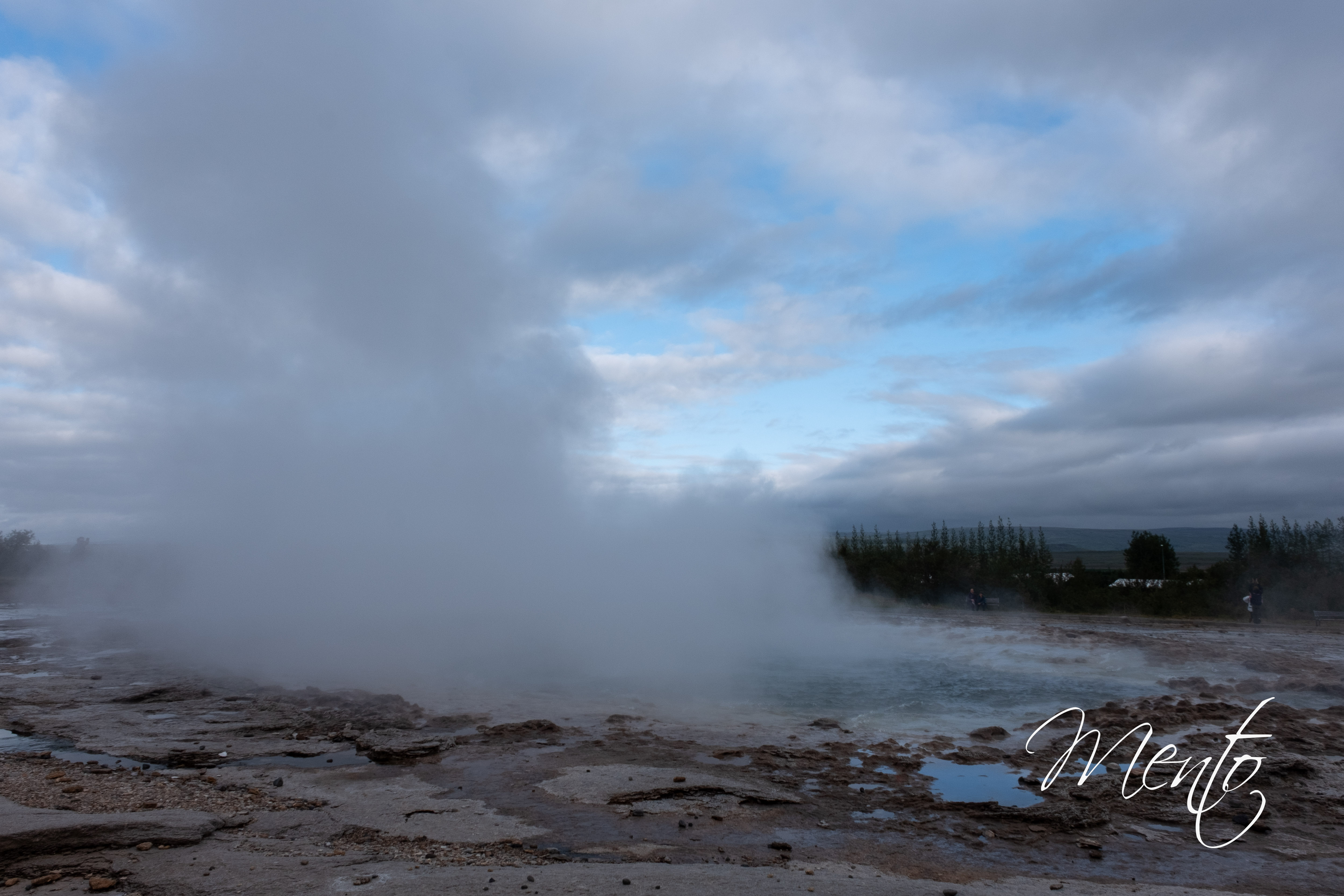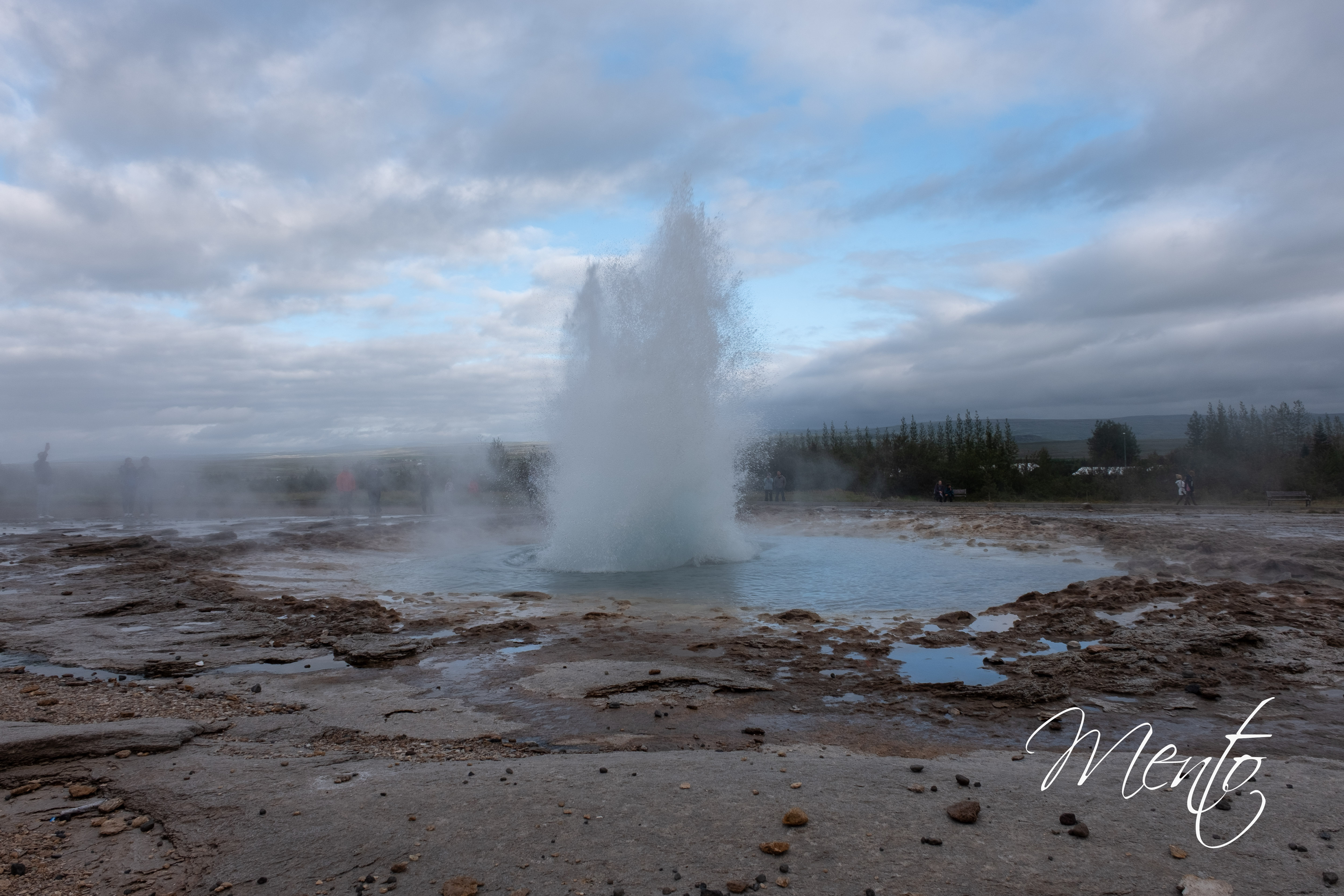 El recorrido por las fumarolas está señalizado y acotado, pero no son muy grandes ni llamativas como las que veremos en el norte del país. Lo verdaderamente impresionante aquí es el géiser Strokkur, el más activo de la zona. El Gran Geysir, que dio nombre a todos los géiseres del mundo, se encuentra también en este valle geotérmico, aunque hoy en día apenas entra en erupción. Strokkur, en cambio, sigue lanzando columnas de agua hirviendo de hasta 20-30 metros cada pocos minutos.