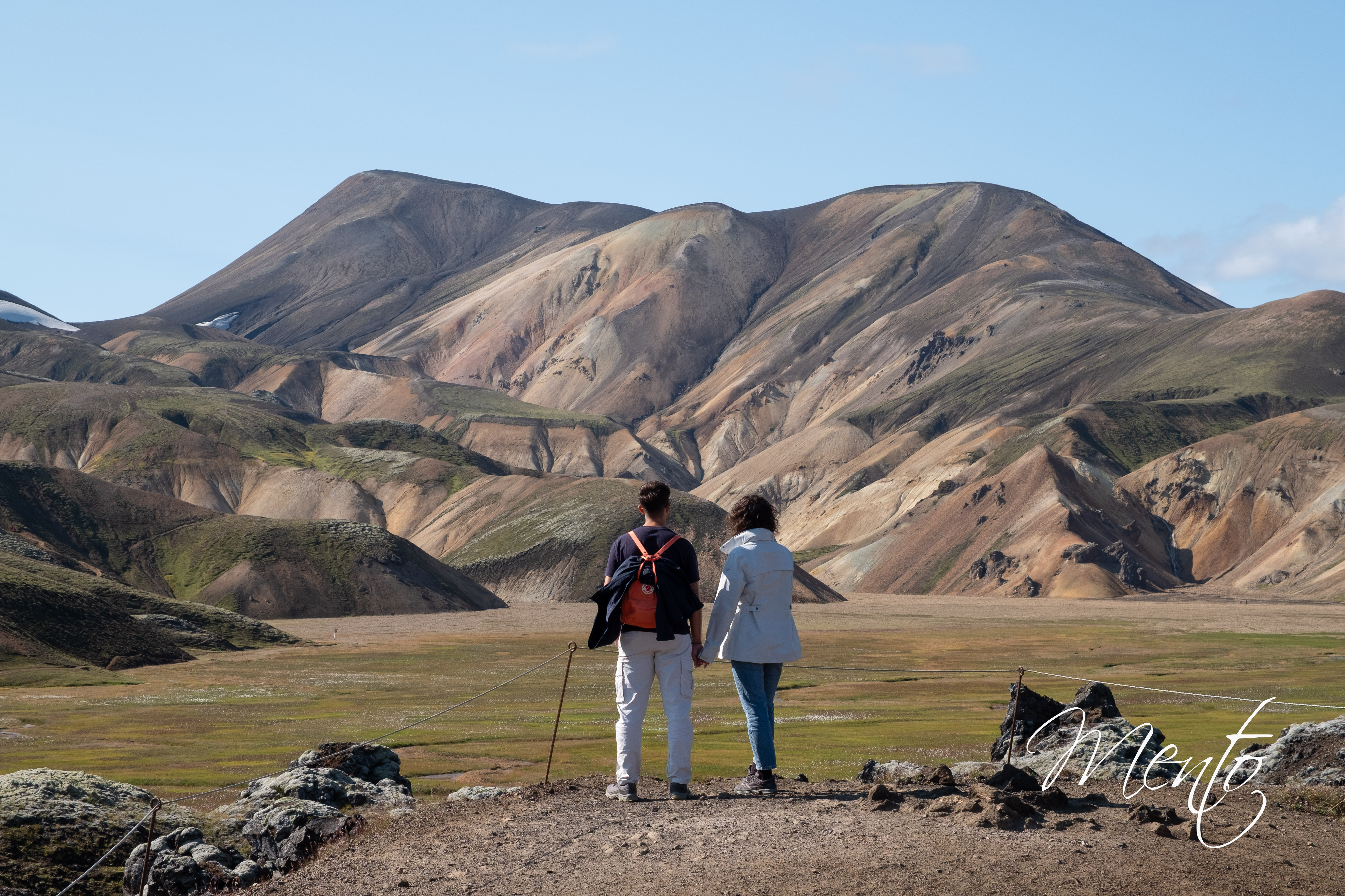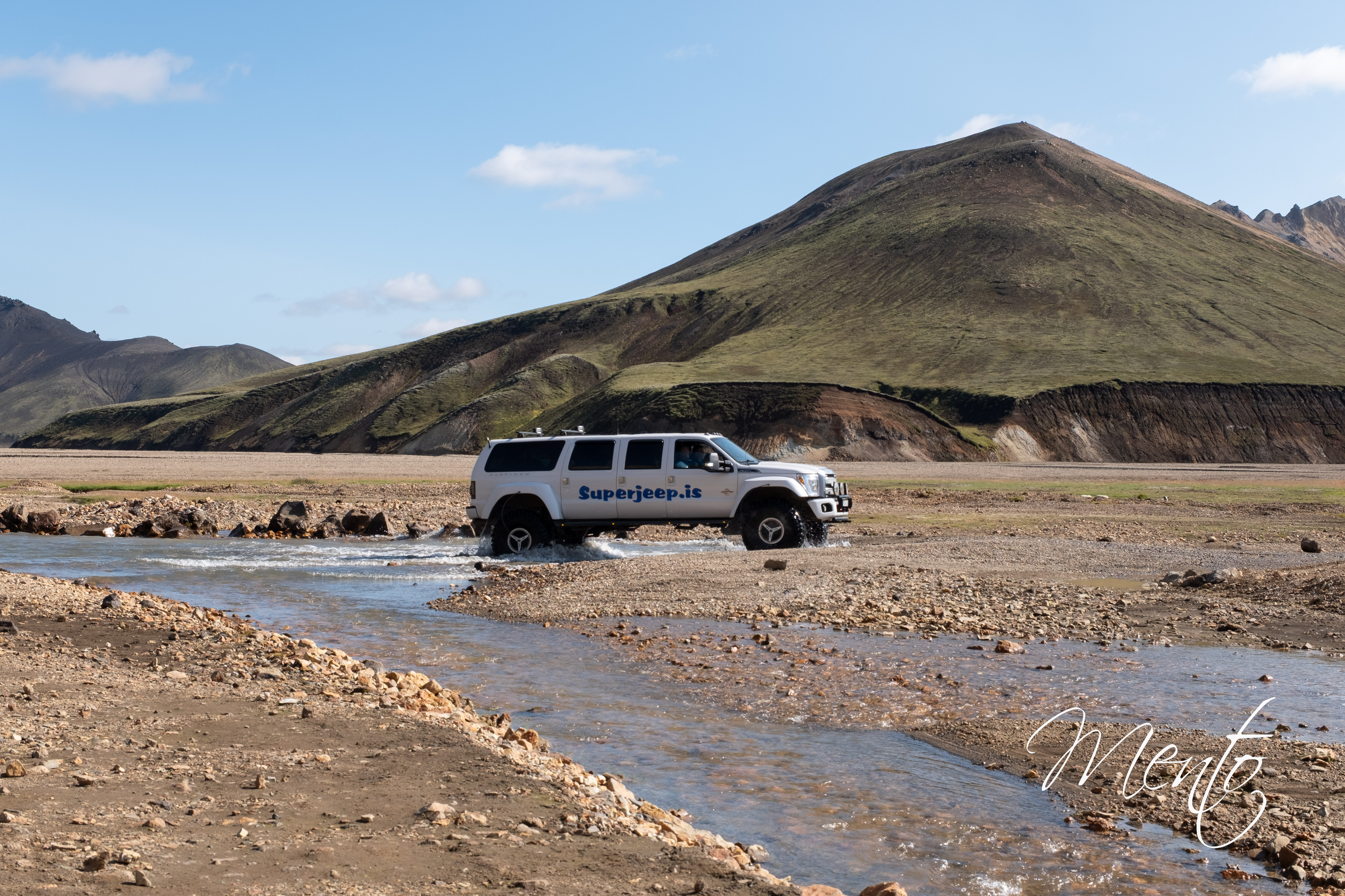 Landmannalaugar forma parte de la reserva natural de Fjallabak, una zona protegida de unas 47.000 hectáreas en las Tierras Altas de Islandia. Al llegar pretendemos parar en el primer estacionamiento y cruzar caminando el riachuelo que solo algunos vehículos se atreven a vadear. Ya habíamos sido advertidos por la empresa de alquiler del coche del riesgo que eso podría suponer, recordándonos que una avería por cruzar el agua no estaría cubierta por el seguro. No queremos arriesgarnos. Sin embargo, nos encontramos con que el aparcamiento está completo (al parecer era necesaria una reserva previa) por lo que retrocedemos un poco hasta un segundo aparcamiento, no demasiado lejos.