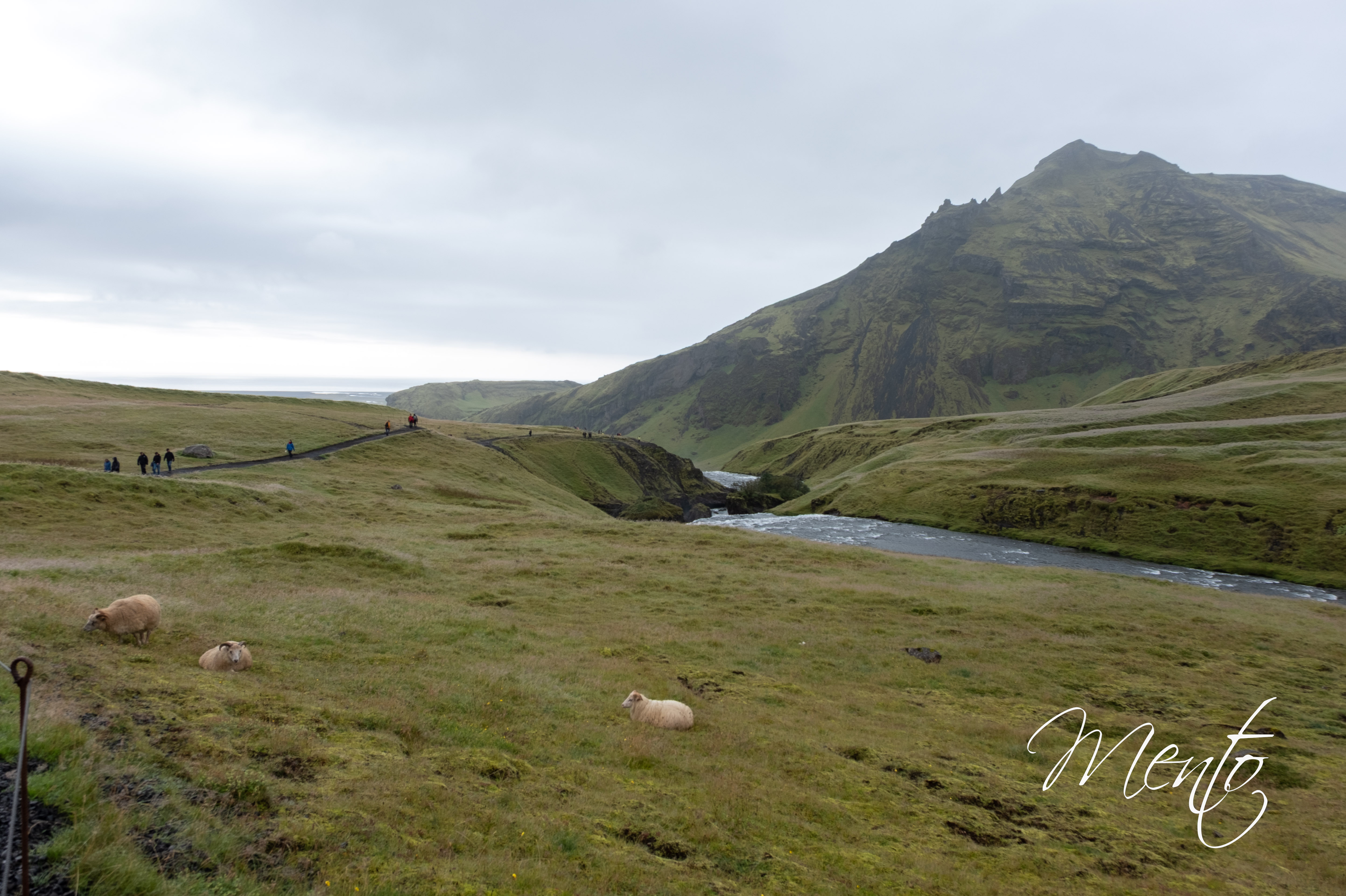 Antes de acercarnos a ella subimos los más de 500 escalones hasta su parte alta, donde un mirador ofrece una vista vertiginosa del salto. Desde allí, un sendero acompaña el curso del río y permite ver otras pequeñas cascadas y a ovejas que pastan tranquilas en las laderas.