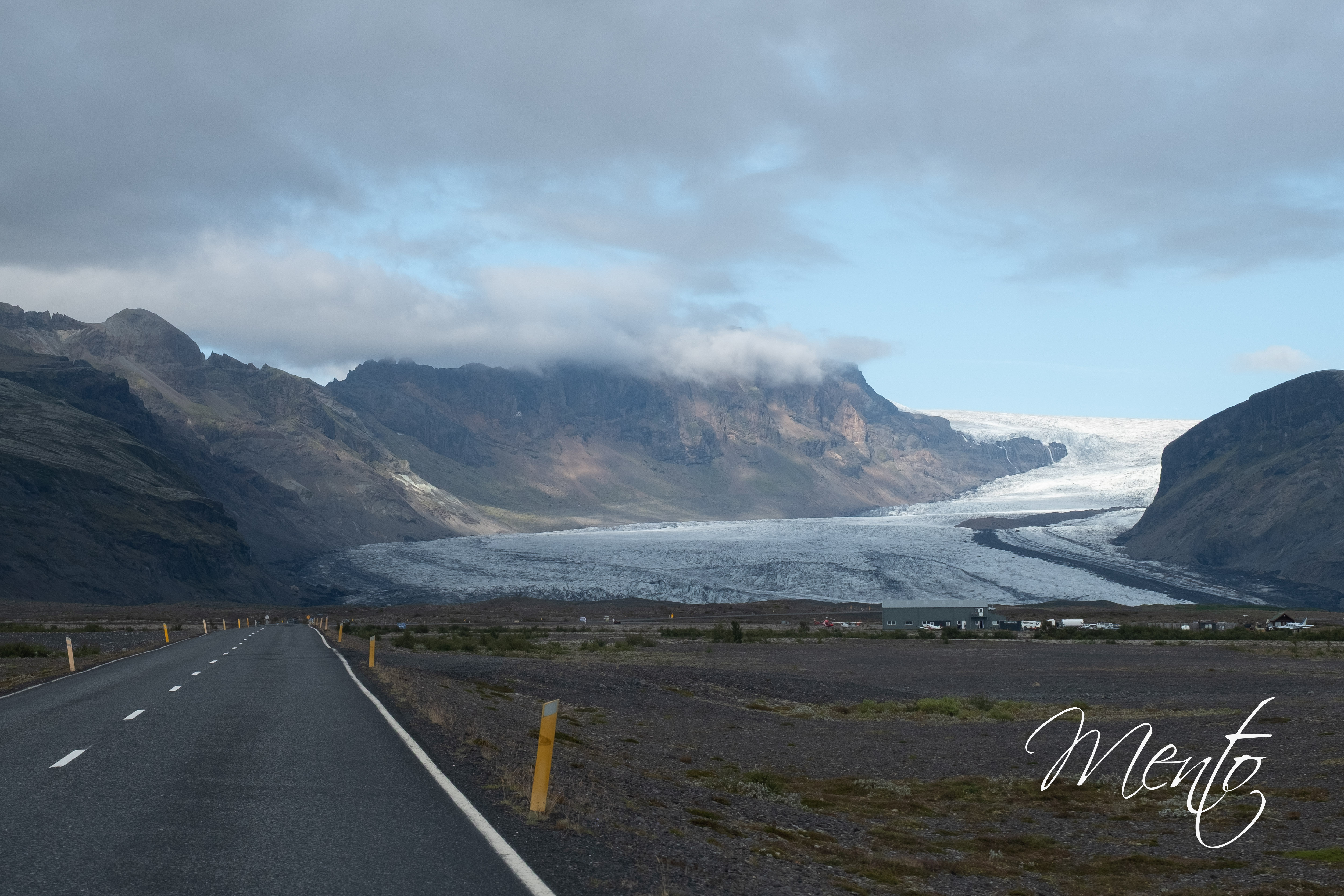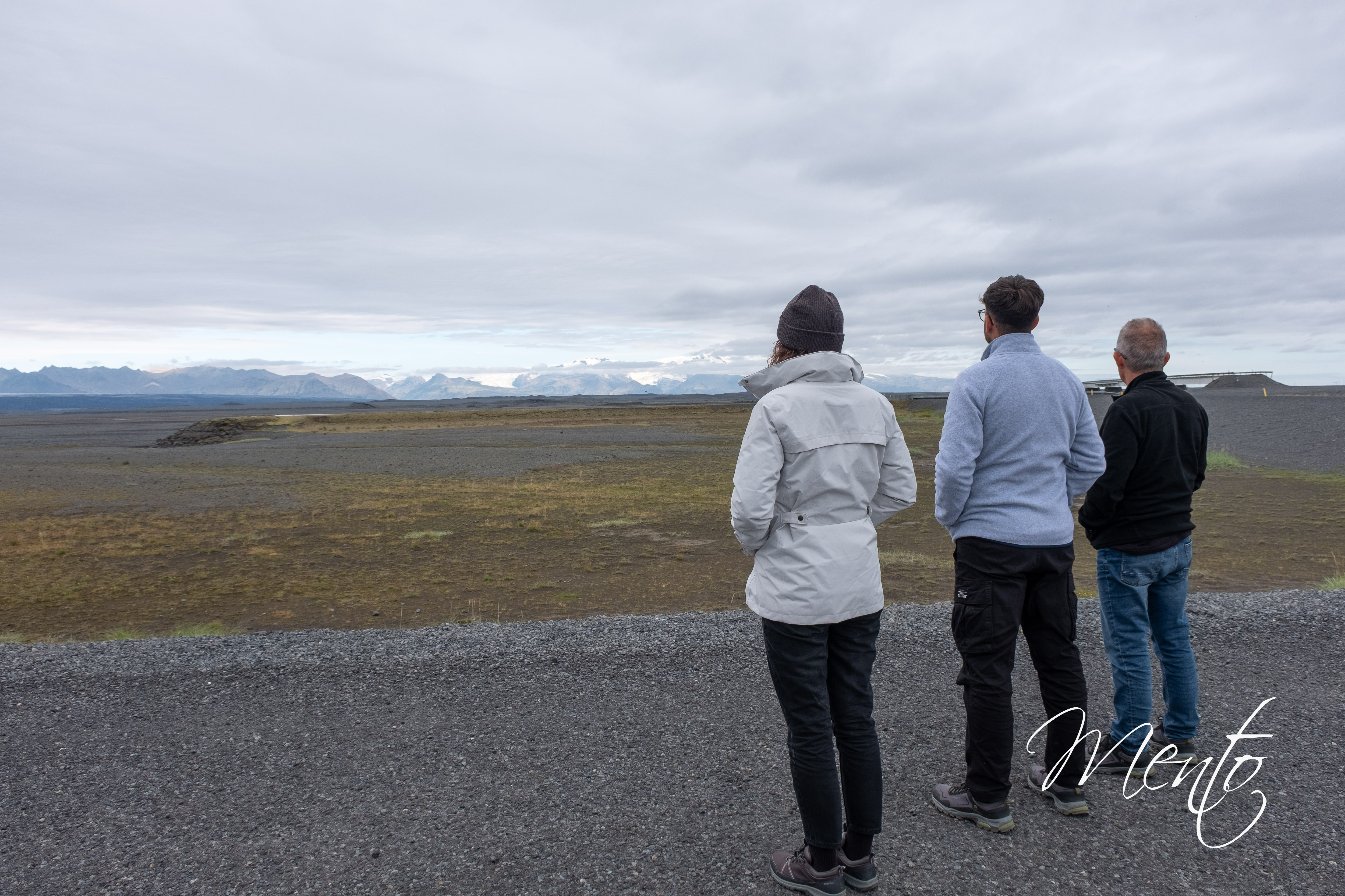 La última visita del día resulta un bonito punto final a esta primera jornada. Aparcamos junto a la tienda/restaurante, de nuevo en un aparcamiento de pago. Las vistas del horizonte al fondo dejan ver un enorme glaciar sobre las colinas, al fondo de un paisaje profundamente llano.