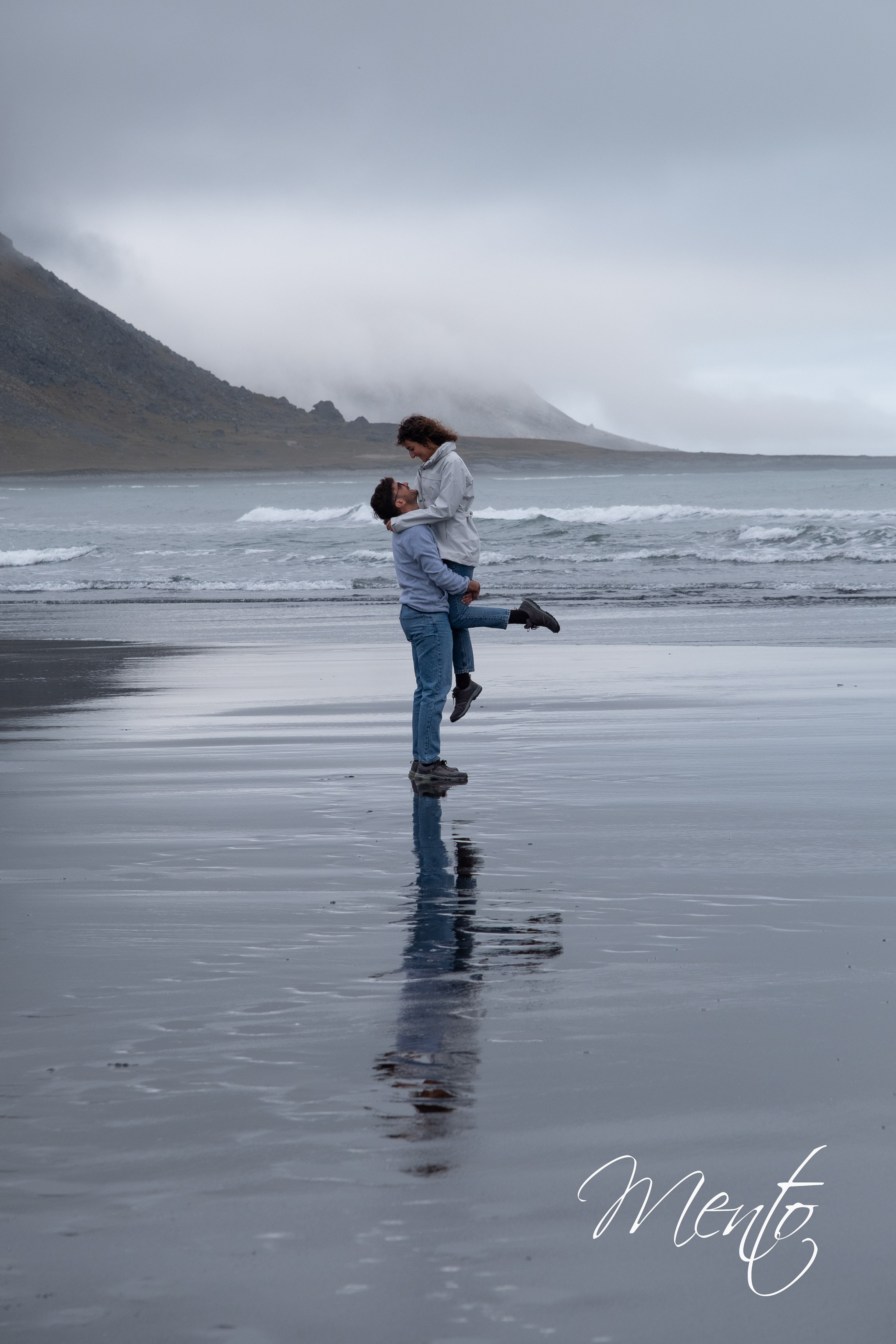 Así lo hacemos, eligiendo el faro, pero sin éxito con las focas. No tardamos mucho en dirigirnos a la playa, no ha despejado del todo pero las nubes bajas también dan encanto al paisaje. Nosotros vamos buscando el reflejo en la arena mojada que deja el mar al bajar la marea, y la verdad es que hacemos bonitas fotos.