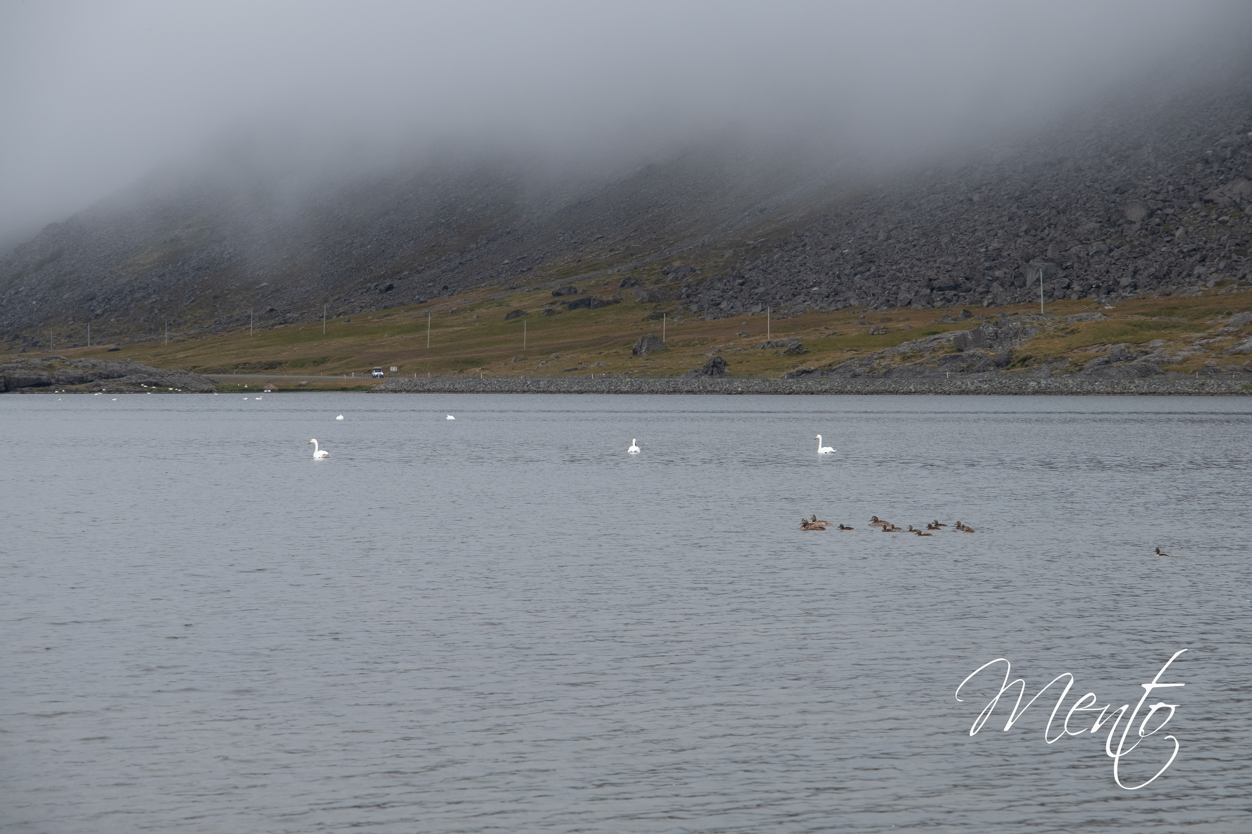 Disfrutando del espectacular paisaje llegamos a nuestra siguiente parada: la playa de Hvalnes, una reserva natural situada a los pies del monte Eystrahorn. Este lugar es conocido por la presencia habitual de cisnes cantores (Cygnus cygnus), el ave nacional de Islandia. Desde la carretera ya se distinguen descansando sobre las tranquilas aguas.